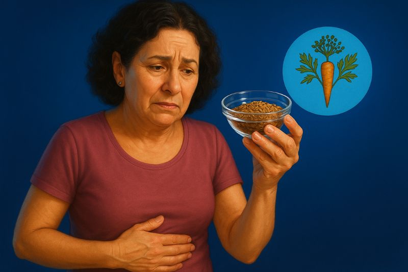זרעי גזר הם תרופת סבתא מפתיעה, עדינה ושימושית במיוחד לכאבי בטן אחרי אוכל.